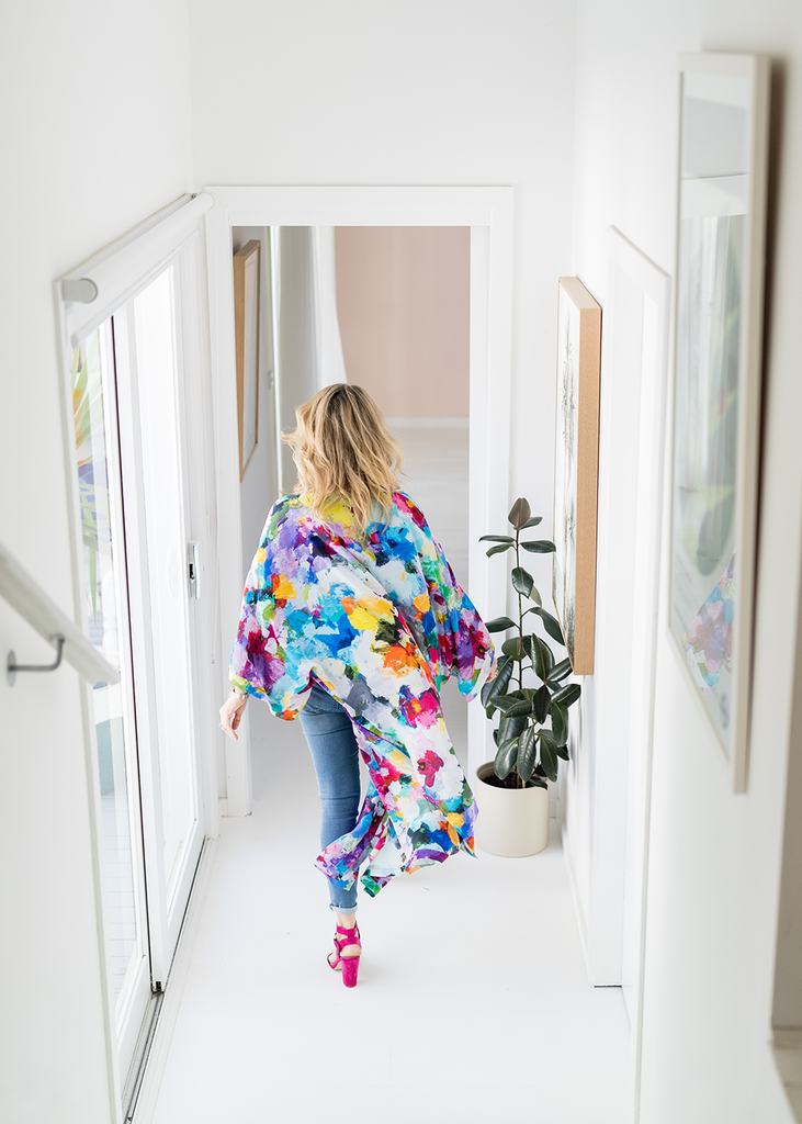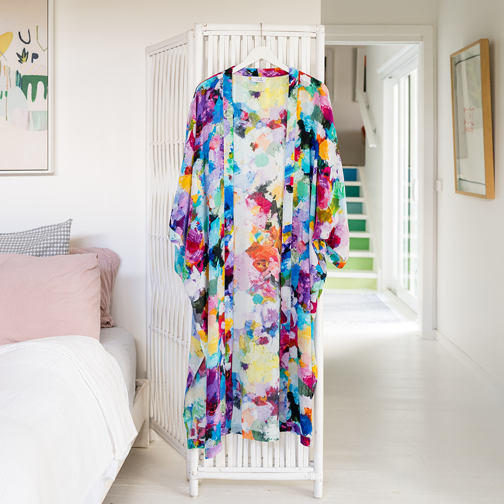 Each Kimono has been adapted into print from an original artwork by artist Camilla Cicoria making each Kimono aesthetically beautiful and one of a kind as it is cut from a running pattern.