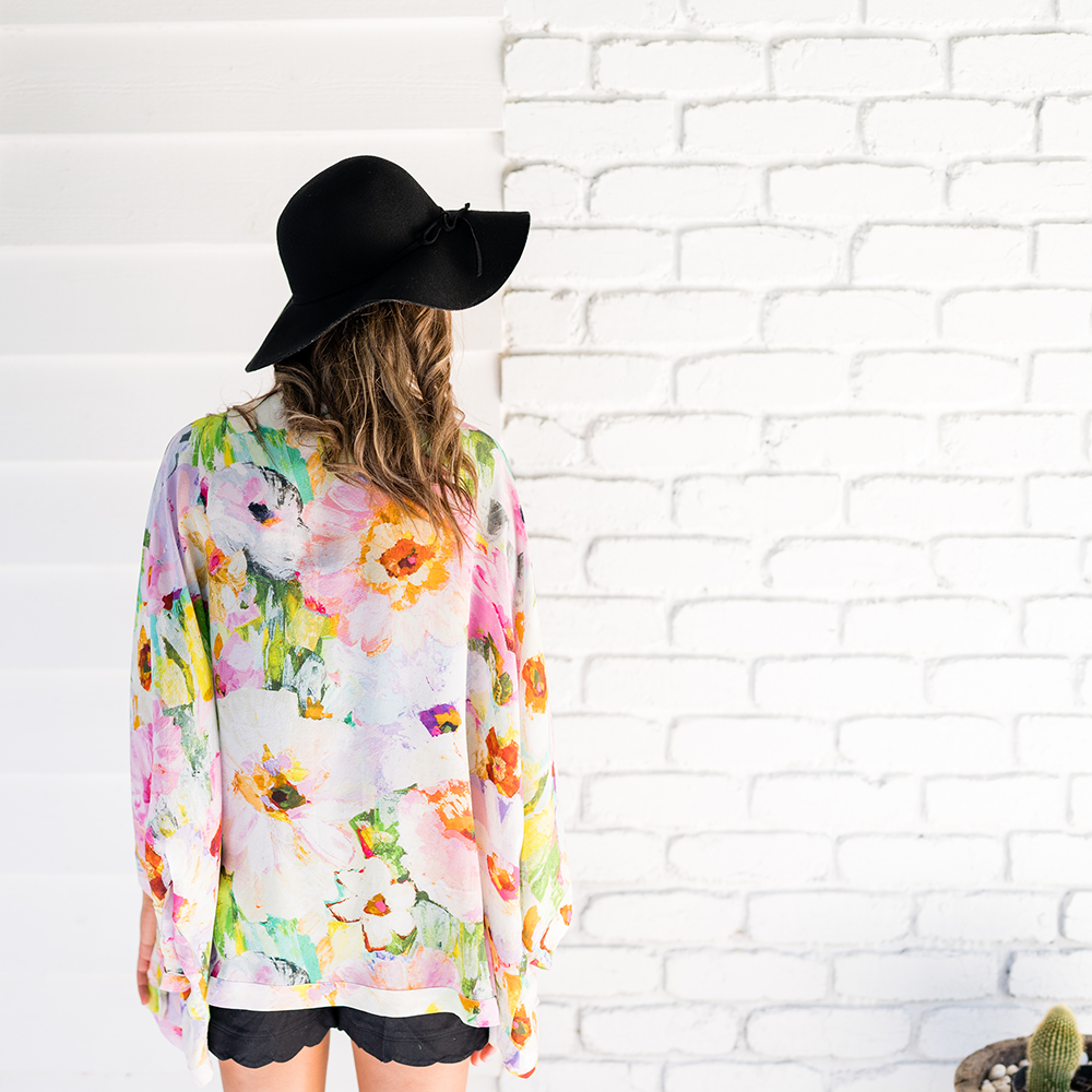 Each Kimono has been adapted into print from an original artwork by artist Camilla Cicoria making each Kimono aesthetically beautiful and one of a kind as it is cut from a running pattern.
