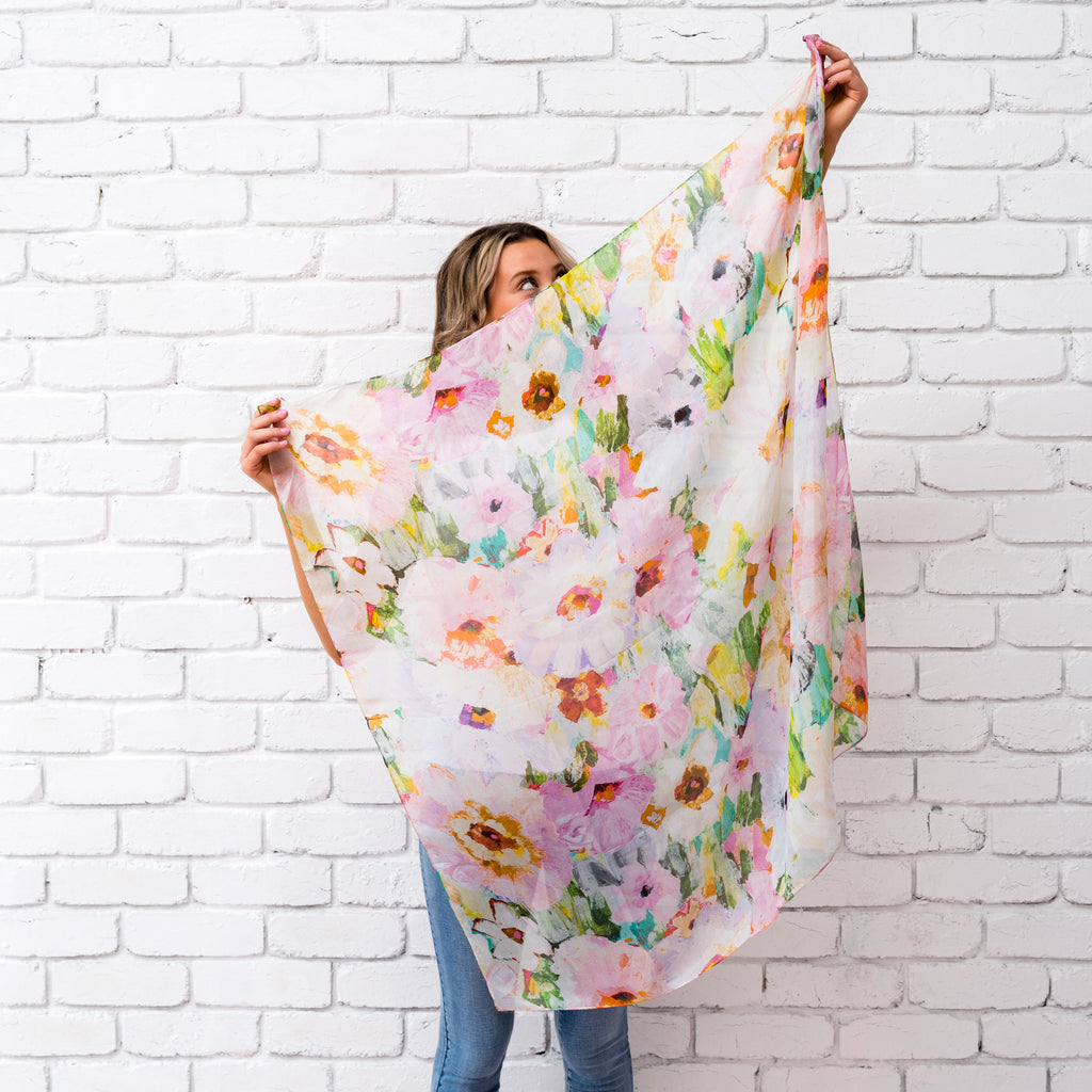 Our beautiful sheer scarves are crafted from 100% pure silk and adorned with bold and colourful prints. Its the perfect way to add something special to your look.