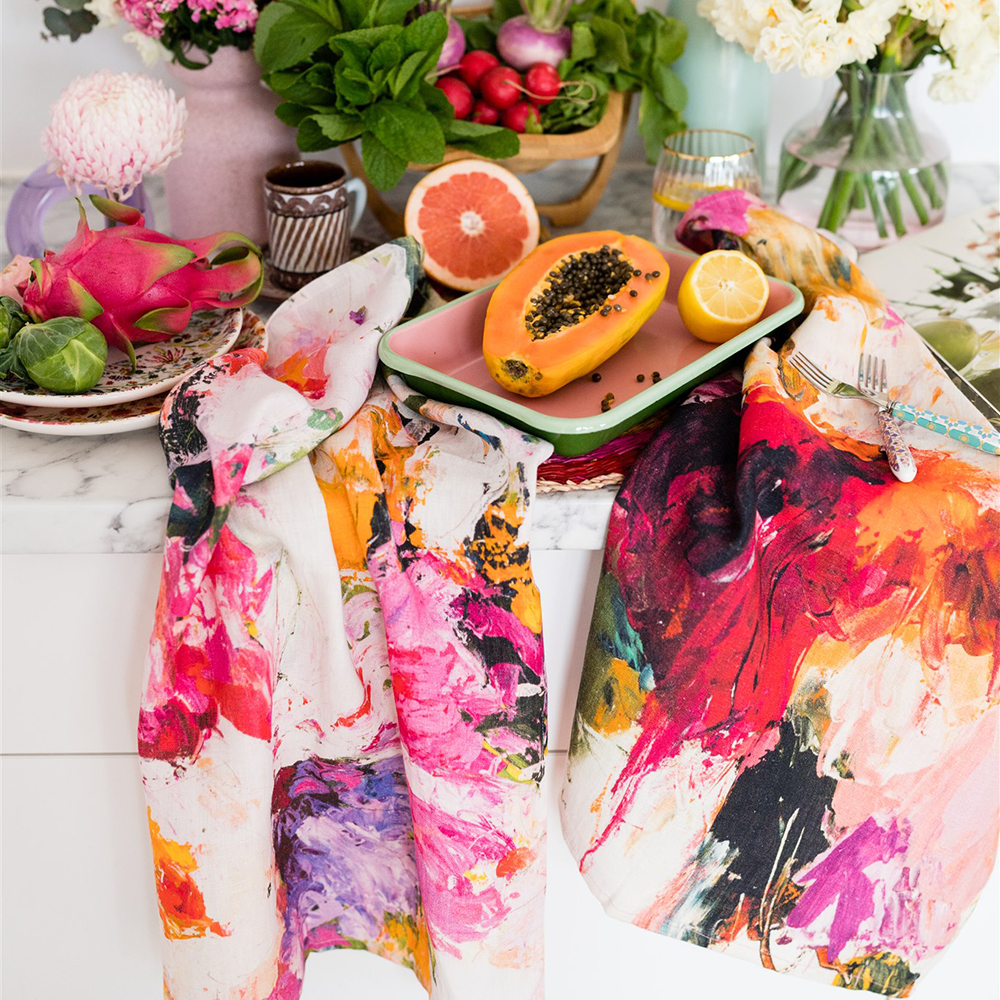 Each tea towel has been adapted into print from an original artwork by artist Camilla Cicoria .