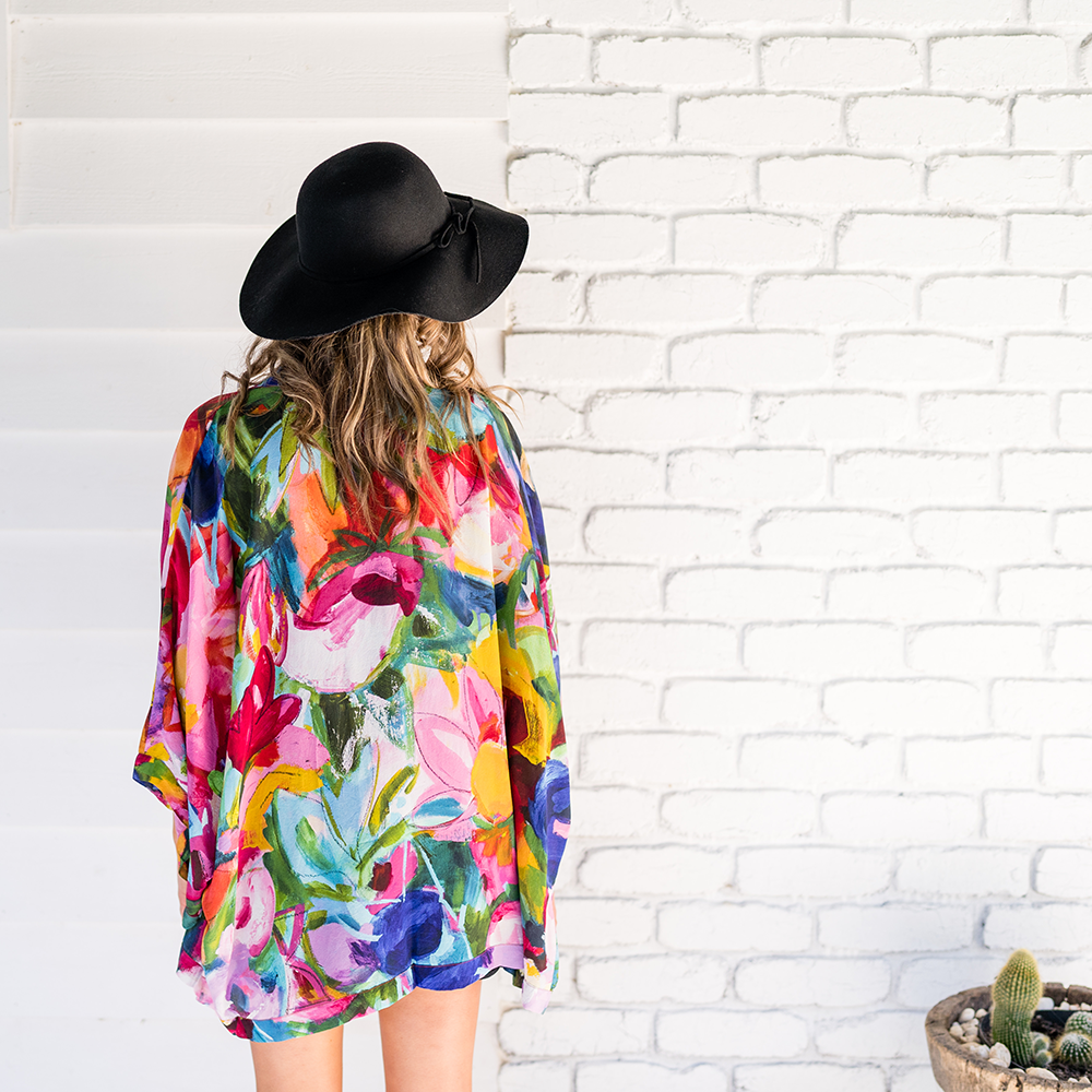 Each Kimono has been adapted into print from an original artwork by artist Camilla Cicoria making each Kimono aesthetically beautiful and one of a kind as it is cut from a running pattern.